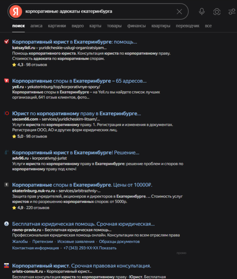 Важный элемент позиционирования — прозрачная ценовая политика. Бюро публикует конкретный прайс-лист, начиная с бесплатной устной консультации и заканчивая стоимостью регистрации или ликвидации юрлица. Это создает доверие и снижает барьер для первого обращения. Кроме того, делается ставка на преимущество «внутреннего» юриста: специалист, постоянно работающий с компанией, в курсе всех нюансов, что дает ему фору в суде перед сторонними адвокатами. Их контент включает ссылки на узкие направления, например, защиту прав акционеров, что работает на углубление экспертного образа. Такой многослойный подход к описанию услуг логично приводит к высоким позициям в поиске по запросам, связанным с поиском лучших корпоративных юристов по Екатеринбургу.