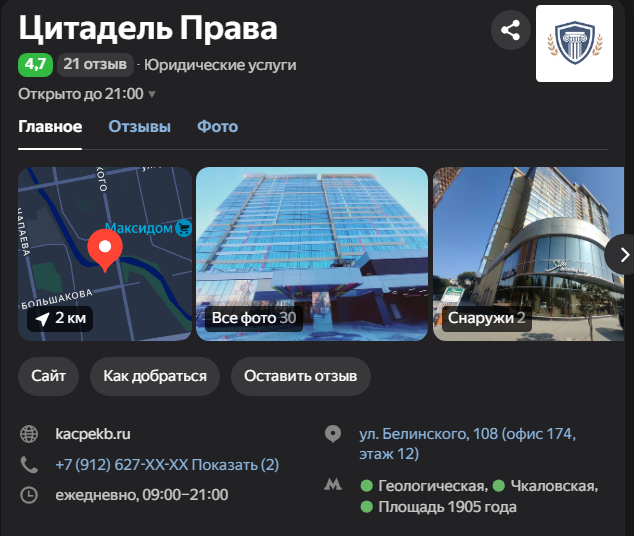 Важно, что «Цитадель права» делает акцент на качестве подготовки документов, отмечая, что ошибки в исковом заявлении могут привести не просто к отказу, а к невозвратным судебным издержкам. Они позиционируют своих адвокатов как гарантов аргументированной позиции в суде. Кроме общих споров, компания отдельно выделяет крайне чувствительную для бизнеса категорию — претензии фискальных органов (налоговой службы). Здесь они прямо указывают на возможные меры: блокировку счетов, арест имущества, запрет деятельности. Предложение в таком случае звучит максимально конкретно: немедленный звонок адвокату Алексею Благодову, который специализируется на обжаловании действий госорганов. Для клиента, который ценит системность, ясный пошаговый план и имеет дело со сложным, многоэтапным спором (особенно с государственными структурами), такой детализированный подход может быть более убедительным, чем общие обещания.
